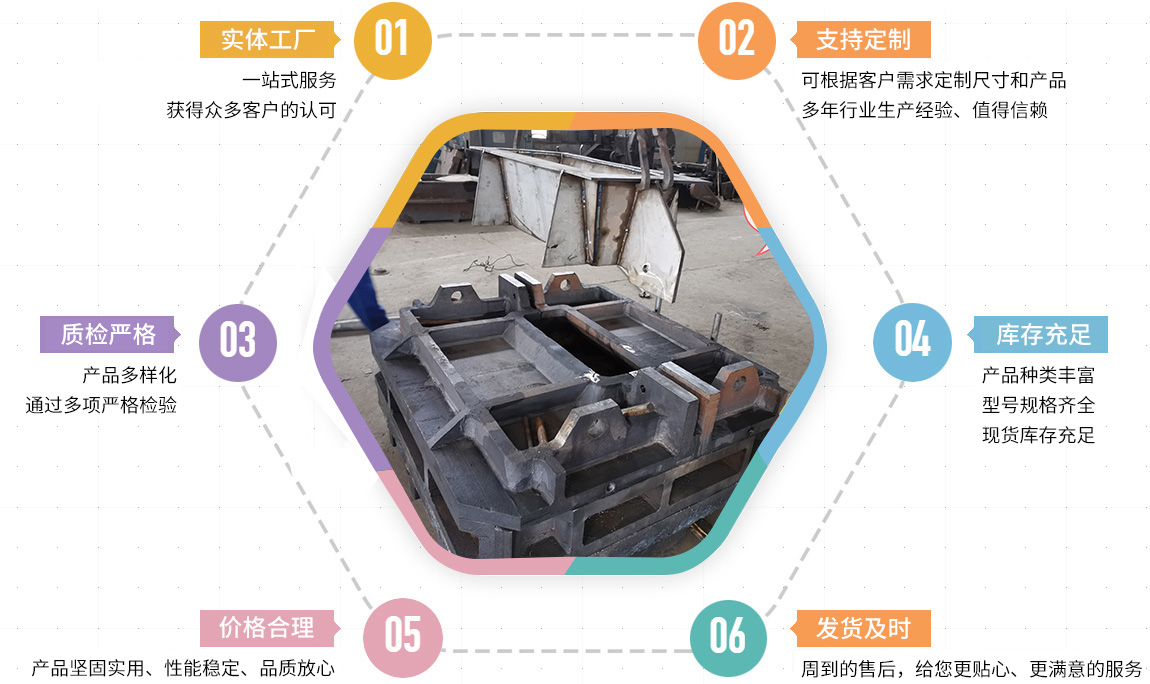 主要產(chǎn)品有:鋼筋壓塊,廢舊剪切料、礦山及水泥機(jī)械配件、鐵路機(jī)械及工務(wù)配件、電解鉛陽極板、母模、粗銅模、陽極模、渣包等。